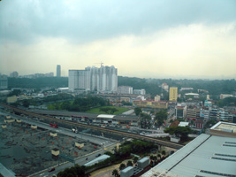 | さて、何も知らない、何も分らない、何も調べてないクアラルンプールです。こう言うときは心のバイブルであるガイドブック。ふむふむ、ここはKL Centralという駅らしい。ふむふむ唯一聞いたことのあるKLタワーより高いPetronas Twin Towerはここから電車で行けるようである。ふむふむちょっと下にBukit Bintangという雑多があるようだぞ。ふむふむ、KLCCからはちょっと交通が不便だぞ、観光しながら歩けるかも知れない距離だな。 |