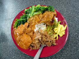 | 5時間後に予約(展望台は無料のようです)してBukit Bintangに向いましょう。結構距離あるのね....。え〜昼間なのでつまらないです。お昼の時間なのでBB Plazaのフードコートで一番混んでいるお店をチョイスしてお食事。 |