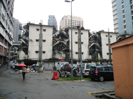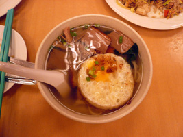 | 湿気で体力を奪われたのでKL Monorailで一路ホテルへ。ご就寝のため17:15分のPetronas Twin Towerをno-showして、再度Bukit BintangのJI.Alorへ。しかぁ〜し嵐です。ちょこちょこ雨宿りをしながら、ちょっと入ってみるかと横ちょのお店へ。いやぁ〜大失敗。頼んだのは春巻きとアヒルソバ。春巻きは半生揚げ状態に野菜がちょろり。ソバはうどんのお湯ひたし。つまり味が無い。そそくさと引き上げ天候も天候なのでクアラルンプールを終了しましょう。 |