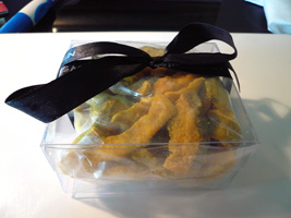 | ホテルに戻るとプレゼントがやって来ました。これはなんでしょ?干しかぼちゃ? |
