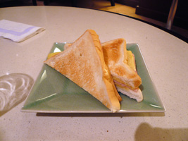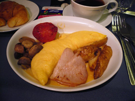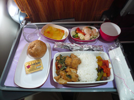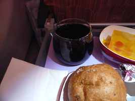 | 慌ただしくコンチネンタルブレックファーストを頂き、シートをめい一杯倒したところで「は、シートを元の位置に戻して」のコール。クアラルンプール到着です。 |