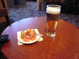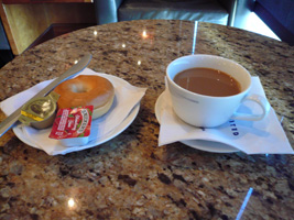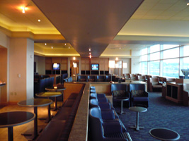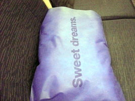 | 今回は国際線乗継ぎなのでUS AirWays Clubが使えます。が、5:00AMからです。フライトは6:01AMです。チェックインしたのは5:10です。泣く泣くゲートへ向います。別にたいしたラウンジではないのであるが....。 日の出フライトです。TEDの紙枕ってこんな文字書いてあったっけ?何か勘違いしている言葉である....。 |