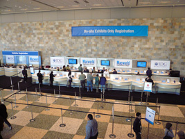 | レジストレーションは長蛇の列。今回からプラチナレーンだもぉ〜ん。Express Registrationが使えるんだも〜ん。空港のレジストレーションが無くなったから一般だったら大変です。並ばずにチェックイン完了。 |