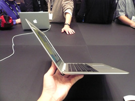 | MacWorldExpoに関しては他のサイト(こことか)が詳しいでしょう。ちょっと調べる視点が一般とは異なるしね。逆に言うと一般的なことを知りたければ行く必要は無いのである。 しかし、今回登場のMacBook Airはすごい。こりゃすごいわ。 |