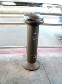 | 空港まではやはりBARTです。空港のカーブ再度に登場した喫煙コーナーの灰皿であるが、鍵がかけられてるんだわな。盗む奴がいるのか?中身よりトレーが売れるってことか? 国際線への乗継ぎ客はバス待ちで並ばされています。これなら歩いて行った方が楽だぞ。セキュリティーを再度通るのが嫌なのか?ただ知らないだけなのか?まぁいい....。 RCCでは冒険してベーグルをチョイスするもやはり馴染めず。悪しきTEDのいつものようにラウンジから離れたゲートに行き赤い絨毯から横入りで搭乗です。 |