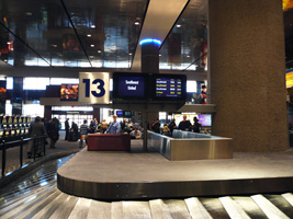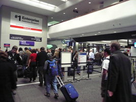 | 多少地学のお勉強をしながら2005年度のドリンクバウチャーをやっとの思いで消化しシャルドネを頂き、隣の老夫婦に、この辺から雪山だぁ〜あれがストリップだぁ〜あっちがグランドキャニオンだぁ〜の説明しながらラスベガス到着。 新コンコースも大分出来上がってきましたが、荷物のターンテーブルが遠くなった。前は一番手前かその次だったのがなんと一番奥っちょ。こっちの方が安いのか? |
