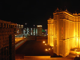 オープンしたばかりのPLAZZOへちょっと見学。ま、Venetianの兄弟ホテルですな。ガジノはゲームマシーンが新品ばかりでかなり液晶を使ったマシーンが多いので明るい。しかもピントが合ってるからシャキ〜ンって感じでメリハリがある。でもベネチアンの流れだからハイローラー向けかな?無造作に$5デノミのビデオポーカーとか置いてあるしね。フロアアクセスも分りやすいぞ。 |