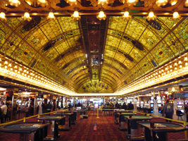 | おカジノの方はお調子がお悪そうであります。こう言うときはバーでチマチマチマチマ.....。いい加減酔っぱらたので一気にブラックジャックへ向かい(いわゆる初心者の一番負けるパターンであり、カジノ側にとってとっても美味しいお客)あっと言う間にすっかんぽん。残り2日あるんだが....。こう言うときはペニースロットでやくものを楽しむのが良さそうな物だがどうも手数が多い物はよくわからん。どうするべ....。修行のために飛ぶか? そう言えば....Tropicanaって行ったことがない。見に行きましょう。MGM GRANDに寄り足跡を残した。猫屋敷を見ると子猫ちゃんが何時の間にかライオンになっていました。TropicanaはHarrahs系でもMGM MIRAGE系でもない。初めてラスベガスに来たのは新フォーコーナーのMGM GRANDだったが、最近はこの辺りのホテルはご無沙汰である。Tropicanaのカジノはガラガラでごんす。テーマホテルがもてはやされた数年前と違い、今は完全に高級志向ですな。Luxorにも寄ったが相変わらずここのカジノは息苦しい。 |