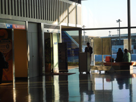 | これまたターンテーブルが遠い。この時分った。入国ブースが左右2つに分かれているのだな。右の方は撃混みであった。だから混んでいるときはもう一つの方に廻るのが良い。 |