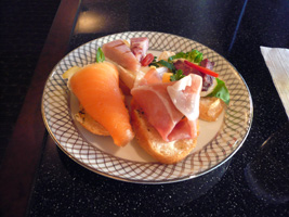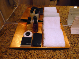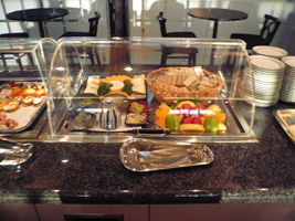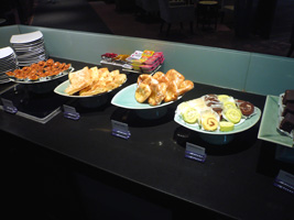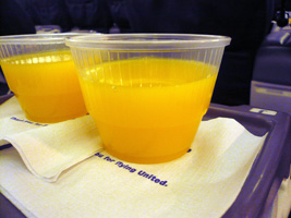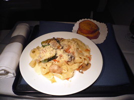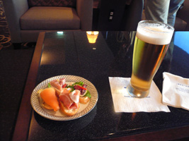 | 直前に空いた2Aを確保し、成田へリムジンバスで。今回からボーディングパスのFQTV(マイレージナンバーのステータス表記)が変りました。今までは「PREMIER EXEC 100K」だったものが「PREMIER EXEC 1K」になってます。UAのFでも日本ヘリコプターのプライオリティレーンが使えます。ちょっとした列でもストレスが溜るのでこれはいいかも。そんなに時間がある方でもないので一直線にUAのファーストラウンジへ向います。しばしビールとおつまみを堪能し搭乗です。バジルの香りが堪らない。ファーストのラウンジのトイレにはしっかりウォシュレットが付いています。 |