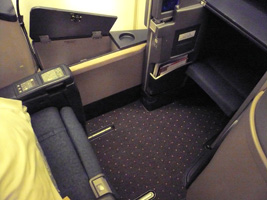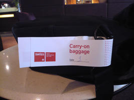| さてシンガポールへ向います。事実上は初めてだがLX便としては2度目のフライト。チェックインカウンターはGです。中途半端な時間だったので空港到着は3時間前だったので当然カウンターは空いていません。ですが、もう並んでます。暫く経ってチェックインが始まり、ちょっとすると隣がStarAllianceGoldのカウンターになったので、そちらに並び直す。手荷物にはタグを付けてくれちゃいます。ボーディングパスにちっちゃく「TG Business Lounge OK.」って書いてくれます。(優しい〜) |