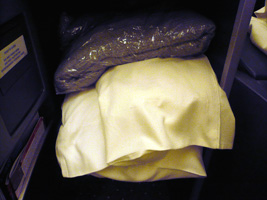 | Fは二人だと思ったのだが甘かった。はやりUAである。FもCも満席でございます。このFの毛布であるが、静電気の凄いこと凄いこと。 |