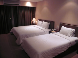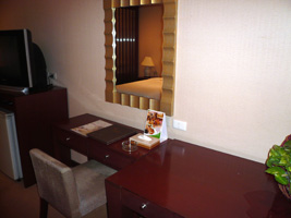 | ホテルはUnico Grande Silom Hotel。もっと安いところでも良かったのだが、インスタントコンファームが出るところがここだったのだ。他だと「24時間以内にお返事しま〜す」「取れませんでした〜」だののパターン。朝食付きでTHB1800である。高い!部屋をアップグレードしちゃってくれたようでEXECUTIVE ROOM(これがスタンダード)からEXECUTIVE SUPERIOR ROOMになったようである。ここのロビーのビジネスセンターにはWi-Fiがあります。THB20/1hだそうである。 |
