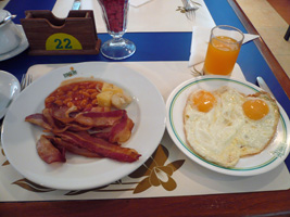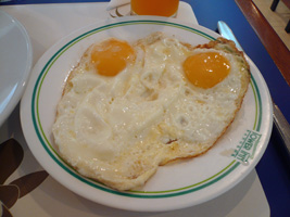 | 翌日の朝食はおね〜ちゃんにサニーサイドアップを頼んだら仮面ライダーにしてくれた |