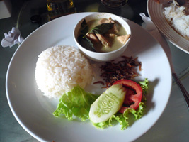 | 夜は定食屋でカレー(またカレーです)とトムヤンクンを食べて、タニヤでビール。今日は中国の大晦日。 |