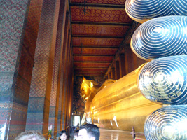 | さぁ、初のバンコク観光です。お船で王宮まで行ってみましょう。最初に行った桟橋はTourist BoatでTHB1400である。無視して次の桟橋へ。そこもTourist Boatである。結局Royal Orchid Sheraton Hotel & Towers横のPier3からチャオプラヤー・エキスプレスでPier8へ。 王宮を見て納得して近くのカレー屋でカレーを食べて涅槃像に行って、カオサンでビール。 夜はゴーゴーバーに行った。ギャル曽根とピーターが一杯いた。 |