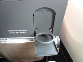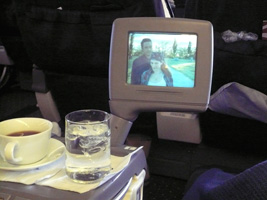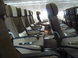 | 機材が到着し20分くらいでしょうか、登場開始です。この便はZRH-BKK-SINなのでチューリッヒからシンガポールに行くPAXは機内で待たされます。かなり暑い機内なのにかわいそう。 さぁエコノミーだ。自分の席に行くと狭い....これは狭い。UA並かそれともそれ以下か。実は最近のY搭乗経験はTGである。TGのYは中々広かったぞ。その前はUAのY+であり2006年のPBAirは短距離モノクラスだからどうでも良かった。こりゃ長距離はかわいそうだ。 トレーもちっちゃい気がするぞ。エンターテイメント系は今はやりのパターンですな。一つ優れものがある。AirShowはいいとして前方カメラ・下方カメラも付いていること。乾燥した大地なら面白いぞ。 |