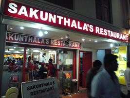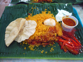 | スプーンを持ってきてくれたのだが手で食べましょう。こりゃうめぇ。食後は近くのバーで一杯引っかけて終了。ま、こんなもんでしょ。フライトまで7時間だしね。お店を出るとあっと言う間に人が減っていきます。リトルインディアの夜は早い。 |