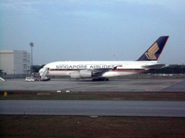 | UN804 SIN-NRTはガラガラでごんす。タキシング中にA380が見えますね。整備中でしょうか?いきなりトラブルでしょうか? |