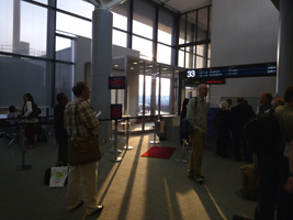 | しかし24時間空港は分ったけどさ、実際には朝まで出発便が無いのにゲート前のセキュリティーを稼働させておくのね。6時間前からゲートに入って待つ人っているのかな?人それぞれですが...暇そうな空港職員。 ネットはWi-Fiがあるけどルーターを拾ってこず。部屋に何カ所もEthernetポートがあるんだけどこれもルーターを拾ってこず。部屋にある電話がIPフォンなんだけど、これのためだろうね。でも一部屋に4箇所もいらないだろ。 遅めにチェックインして4時間で早めにチェックアウト。そしていつものではなくゲート近く(今回はC6)のTGのビジネスクラスラウンジへ。このビジネスクラスラウンジは両サイドにあります。ちょっと狭いが空いてるな。ここで大失敗。トマトジュース飲んじゃった。タイの甘くない系のジュースは飲んじゃダメなんだってば。妙に甘いんだから....。 |