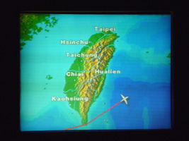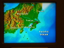 | 今回は11Fをチョイスしてみました。隣が来なければツインモニターなのだが満席ですから...。使った滑走路は16L(←滑走路はこういう表記をするそうです)、つまり暫定滑走路から離陸です。ここ遠いね。ゲート33から離陸までほぼノンストップで20分以上かかったんじゃないか?何で空港にこんなワインディングロードがあるんでしょ。過去の問題があるにせよなんとかして欲しい物だ。ある意味成田空港という場所自体もなんとかして欲しいところだ。 |