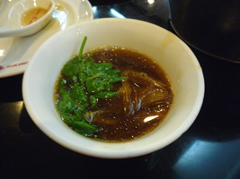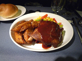 | 今日のカベルネは美味しいぞ。食事はアジア線特有(でもないか)のTRADER VIC'Sです。チャーシューを頂きましたが、これって豚肉の骨付きバーベキューよね。 |