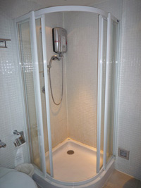 | さて遠い遠いDAY ROOMSですが、ドンムアンの時より狭いね。でねツインだったんだけど、ベッドちっちゃ!しかも間隔狭!というかくっついてるじゃん。野郎と二人では絶対に利用したくありません。シャワーは....案の定電気温熱機でした。温いだろこれじゃ。 DAY ROOMSの入口は4階ですが部屋は4階と3階ですね。今回は3階だったのだがカーテンを開けるとそこはそのままゲートです。つまりぃシャワー浴びてさっぱりぃしてどらどらどんな景色じゃ?なんて裸のままカーテンを開けるとそこはPAXの嵐、な〜んてことになる可能性があるかも知れない。 |