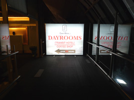 今回初めてDAY ROOMSを使います。(ドンムアン空港の時は何度か使いました)位置は事前に確認していたが、こりゃ遠いわ。端から端まで歩かなければならない。DAY ROOMSはGゲートの奥にあります。ちょっと分りにくいな。案内があるわけでもないしね。このDAY ROOMSに驚いた。高い高い。4時間で2200THBか$79である。6時間だと3200THBか$115です。せいぜいこの半額くらいだと思っていたが、これならノボテルでもその辺のホテルにタクシーで行ってシャワー浴びるだけでもいいぞ。時間的にも早いしね。また朝の搭乗で歩くんですぜ。更に前回もあったけどキーデポジットを$20取られます。一応フォローすると朝食が付きます。乗継ぎまで8時間くらいあるので6時間が妥当なのだが、おかげで4時間にしちゃいましたよ。そもそもスワンナプーム空港は乗って降りるだけならとても分りやすいんだけど、オーバーナイトトランジットなんかした日にゃ不便で敵わん。そもそも広すぎるんだな。ターミナルが一つ手言うのは疲れる仕様である。 |
