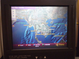 | 短いフライトですがエンターテイメントしましょう。バルクなので座席の間からモニターを掘り出します。でもさ通路側のデブの白人はモニター使ってなかったから分らなかったけど、3席並びだから座席の間って2つしかないのよね。そう言えば目の前の壁にモニターが貼り付けてあったから、もしかして真中の人は目の前のモニターを使うのか?映画を一本チョイスしましたが当然フライト時間が短いので完結せず。後半は明日のKUL-BKKに期待しましょう。 |
