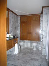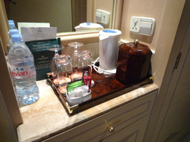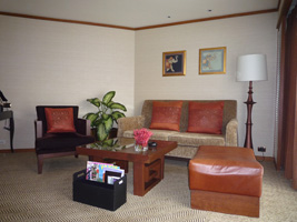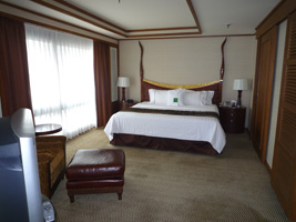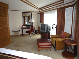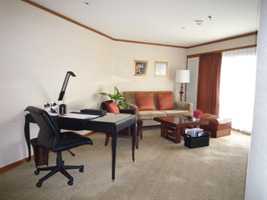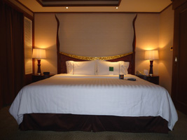 | あまりにもポイントを使え使えと五月蠅いので30泊分をはたいてアップグレードしてやりましたよ。予約はDlx River Viewだったが自動アップグレードでPremium Deluxe River Viewへ。そしてポイントを使ってExecutive Suiteへ。リニュアル前に泊まったことがあるな。 LANは来ているが一ケ所だけ。寝室にはありません。 |