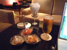| しかたがないので部屋で無料映画を1本ほど鑑賞してからロビーのラウンジでビールじゃ。外は嵐じゃ。シャワーにしちゃ長くないか?ところでマレーシアってバンコクとの時差はどのくらいあるんだ?旅行に行っても時計が無いからわからん。なんてことしてるから乗り遅れたりするんだぞっと。ここでネットがあることを良いことにDashboardで世界時計を設定したらバンコクとは1時間ですな。ま、近いからね。 |