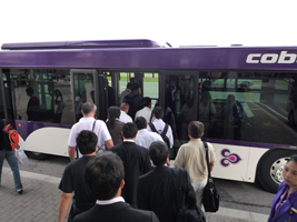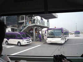 | BKKに到着しボーディングブリッジを抜け階段を下り外へ....。バスがいるぞ....。まさか....。こういうのって根本的に間違ってると思うぞ。 |