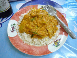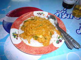 早めの晩ご飯は運び屋さんから盗ブロしたカレーです。てくてくてくてくてくとホアランポン駅まで歩きましょう。はじめはそんなにホットでは無いので「ん?」と思ったが、ネギわけぎエシャロットを食べたときの食感で道が開けて満足。夜はシーロム方面でちょいとお酒を引っかけて終了。普段は一応ガイドブックを持ってきているのだが、今回はすっかり忘れていた。何故かスペインのガイドブック的な物は持っているのだが....。 |