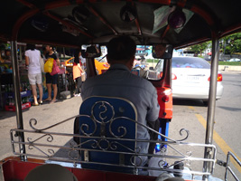 | ホテルを出てタクシーを拾おうとすると 「ホテルカー使え」 「いくらだ?」 「160だ」 「なに!タクシーにする」 「ディスカウントで120だ」 「じゃタクシーにする」 「80でいいから」 半額じゃないか....。行きが50位だから帰りの方が高くて70位と見込んでいたから良しとしましょう。 |