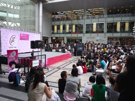 あまりにも暑いので適当に切り上げてサイアムスクエアへ。駅前広場ではどうやらアイドルが登場するらしい。若い女の子(子供達)の奇声が飛び交っています。どこの国も与えるオモチャが一緒なら反応も一緒だな。 |