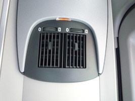 | 成田到着から江戸まではリムジンバス。新型?車輌だったのだがエアコンの吹き出し口の表示がよくわからんぞ。四角と角アール(すみません業界用語)の付いた四角でどっちが開くんだか閉じるんだかわかりゃしない。何故こういうデザインなのかなぁ? |
