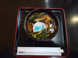 出国審査を抜け小腹が空いたのでいつものように日本ヘリコプターの居酒屋風待合室へ向かいましたが....混んでいる....。丼をトレーに載せた人がうろうろ....どこもかしこも出来上がったアジア人に占領されています。 |