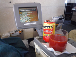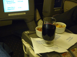 | LAX-IADは767-300Dです。悪しきFクラスです。このシートでよくアメリカ人の太っちょが耐えられる物です。そもそもエコノミーに何故座れるのかも未だに不思議です。軽いスナックと赤ワインでiPod nanoで音楽を聴きながら昏睡状態へ。 |