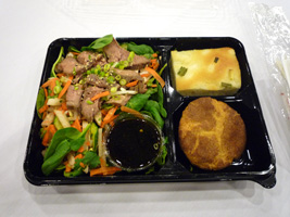 | 基調講演が終了しお昼です。タイランド牛サラダを頂きました。午後のセッションからは守秘義務があるので何も言えませんわ。 |