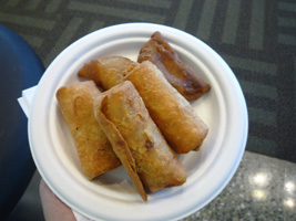 | チェックインしてまずはUSのラウンジ(UAのゴールドは国際線乗継ぎじゃないと使えませんよ〜)で軽く食べ(これ馬鹿旨)てからセキュリティーへ。 相変わらずDコンコースのセクキュリティは異常なほど混んでいます。前もそうだったのだが、プライオリティレーンは遅い。普通に並んだ方が速いです。ほんとあの空港の連中だけは何をやっているのか理解出来ん。同じTSAだろ? ところで妙に日本人が多いぞ。スーツもいるぞ。 |