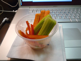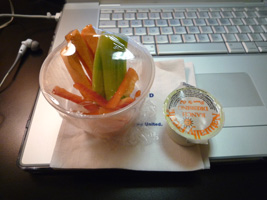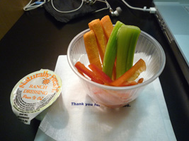 | LAXのレッドカーペットクラブにはこりゃまたコンパクトな野菜盛りがありました。 |
