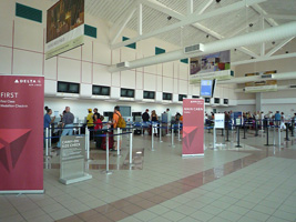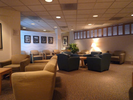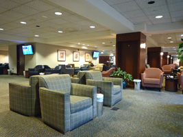 | IADに到着したのはCコンコースの一桁台。次のIAD-AUAはDコンコースの二桁台。そうです、端っこのレッドカーペットクラブから端っこのレッドカーペットクラブまでの距離です。歩いて10分以上かかるって感じ。ゲートに恵まれていません。流石に朝が早いのでレッドカーペットは空いていますがターミナルは混んでますね。不便なターミナル間移動のMobile Roungeも健在です。 |