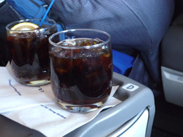 | LAX-LASは何時乗っても最悪のTEDです。何故にもこんなに最悪なのかを冷戦に考えてみたら、ともかく満席であると言うのが筆頭で、センター席には一番旅慣れていないと思われる方々が前から縦に並んでくる。つまり席の並びが (A)(B)(C)通路(D)(E)(F) だとすると。 (2P)(B)(1K)通路(1P)(E)(MP) って感じで並んでいき、(B)と(E)に最後にアサインされたPAXが搭乗してくると。もちろん最後にアサインされるのは団体が多いからある団体さんの集団は縦に並んでいくと。と、勝手な事を言ってみる。 だから飲んじゃいます。シャルドネを二本(つまり二杯)頂きましょう。1Kの使うに使えないアルコール無料券の今月期限切れ分を使いましょう。でもこれって気にしなければばれないような気がしないでもない。 |