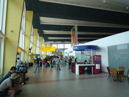 | 初のAUAです。なかなかしっかりとしたターミナルですな。入国審査場は混乱してます。みなさん意外と長い審査を受けてますが自分はほんの30秒である。これまた日本のパスポートの威力か?でもこんな所に来る日本人は少ないだろうって。 |
