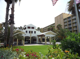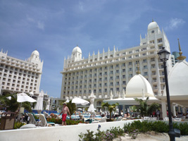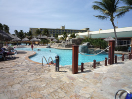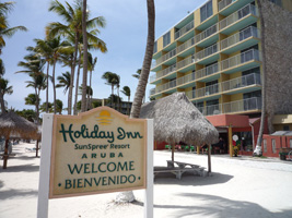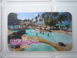 今回のホテルはHoliday Inn SunSpree Resort ARUBA-BEACH RESORT & CASINOです。(なげぇ)チェックインするとまだ部屋が出来ていないらしい。ベルに荷物を預けてホテル内をうろうろ。小さいながらもカジノもありますね。人はまばら。カジノカードはあるのだろうか....一応入れる口は開いているようだがカードは無さそうだぞ。ここでのカジノはどうでもいい。後でラスベガス行くもんね。しかしである、どうしてこう暑い国の男共は爆笑なんだろうな。ノリが面白い。ラテン系のおばさん系女性は突っ慳貪(←こんな字を書くのか....)ですな。 |