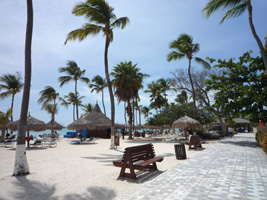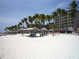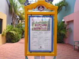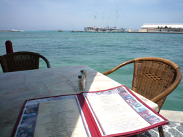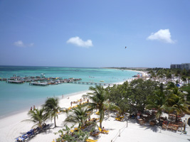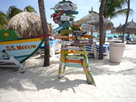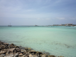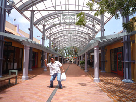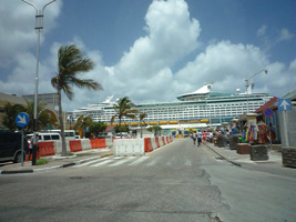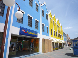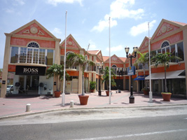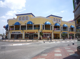 | 翌日はダウンタウンに行ってみましょう。どうやらオランヘスタッド(Oranjestad)ってところがダウンタンでそこのショッピングタウンがあるらしい。なんか言葉がよく分らないというか変というか、「ブエノスディアス」なのに「ダンケ」だったりと....複合技ですな。基本的には英語です。 |