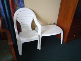 | 一応オーシャンフロントを頂いたようである。太陽の角度からして西向きっぽいな。安リゾートホテルとしては十分だろ。冷蔵庫も大きいしね。ま、一人だからこんなに使わないのだが。 ネットは無いのだが、MacBookProのアンテナ君は「wifiaruba」と「MOOMBA BEACH」を感知。「wifiaruba」は有料です。「MOOMBA BEACH」はシグナルが弱いものの無料なので盗波しましょ。 |
