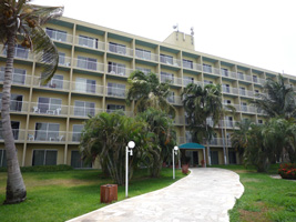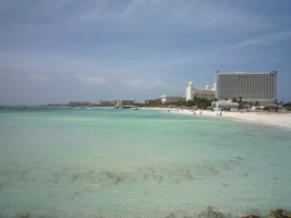 | どうせまったりするのだから十分だと思って今回はレンタカーを借りずにタクシーを使います。タクシーでホテルまで向かったのだが、なんだ?ここは?乾いた平坦なラテン風グアムって感じかな?それにしても風が強い。風が強いので思ったより暑くは感じない。しかし、いい空だね〜太陽も近い。 |