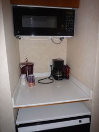 | ここ妙に充実してる。プールもフィットネスもビジネスコーナーもあります。(ビジネスコーナーはネット接続されたPCとプリンターが置いてあるだけ。朝食(コンチネンタル)も無料。コンビニもあります。部屋には電子レンジも大きめの冷蔵庫もあるし、お菓子は無料みたいよ。アメニティも充実してますな。シャワーヘッドはなんとアダムスキー型です。 但し、Holiday Inn Expressのくせに料金は高めです。 |