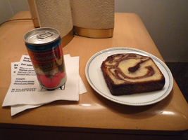 | 部屋には一日遅れでウェルカムチョコレートがやって来ています。チェックインの時に貰ったレターにはウェルカムアメニティがあると書いてあったのだがこれの事かしら? |